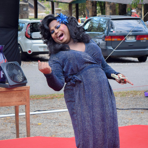A large RV stood nearby and there were a few small tents with rainbow flags where groups of people mingled; a half-circle of folding chairs decorated with different colors of balloons waited in front of a makeshift stage. In front of the chairs stood a small table with a large tip jar and a machine spewing out hundreds of tiny bubbles, to the delight of small children and lesbians alike. I soon found myself face-to-face with the head honcho, the queen herself, Candy Elizabeth O’Hara (also known as C. Shawn Carter).